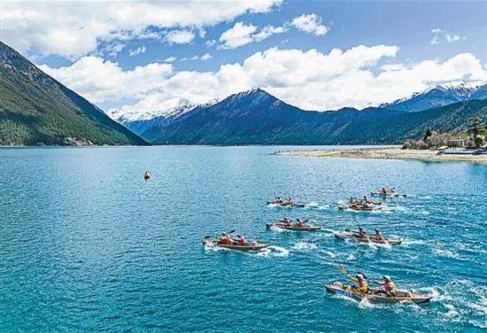 4月20日,2024年巴松措國際漂流公開賽的選手在比賽中。 新華社記者 孫非攝
