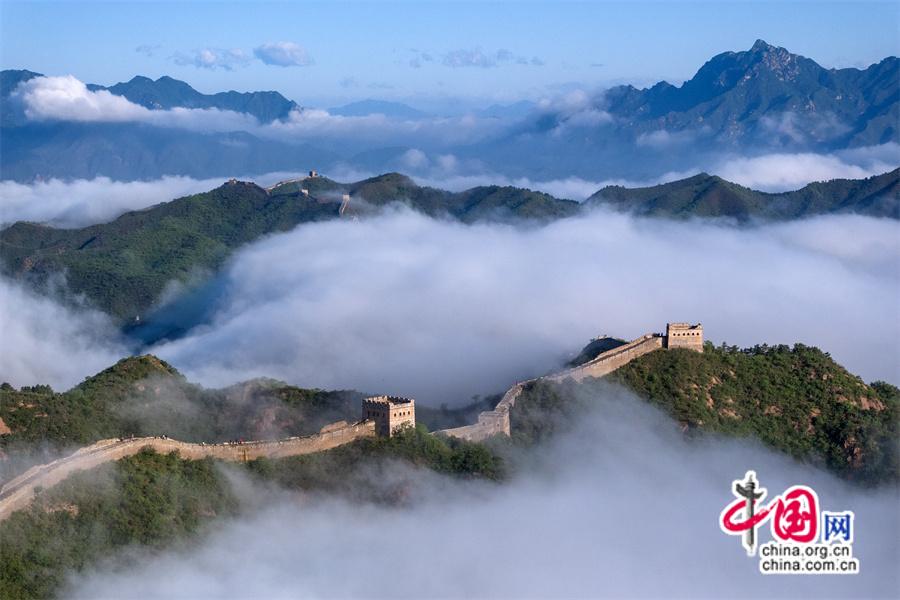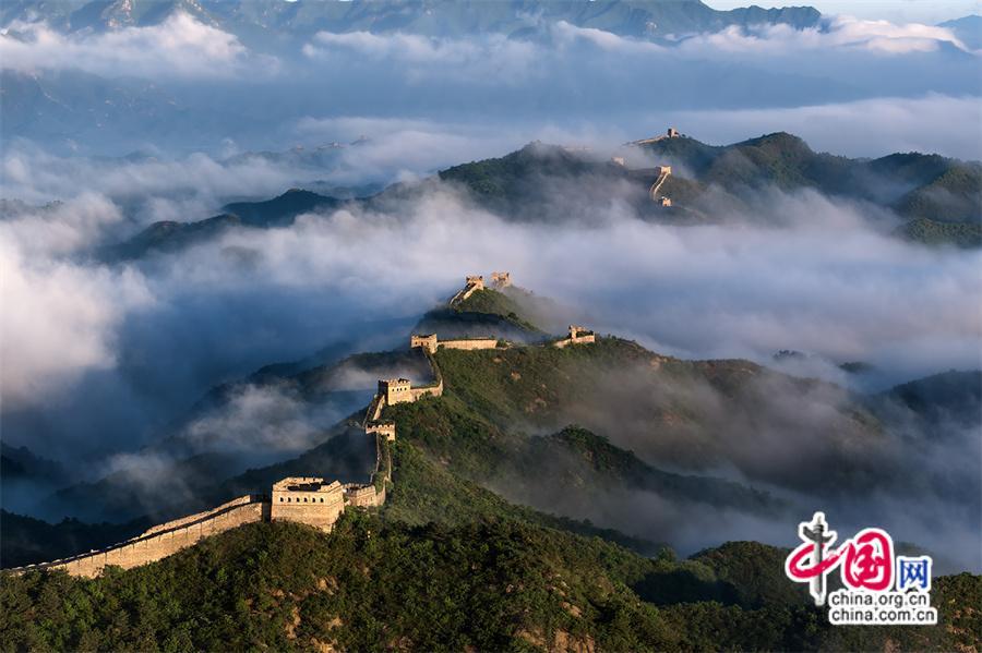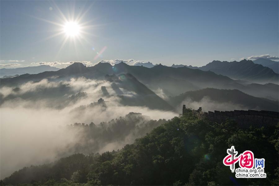 5月26日,雨后早晨,河北省承德市灤平縣境內(nèi)的金山嶺長城出現(xiàn)云海奇觀,變化莫測(cè)間。