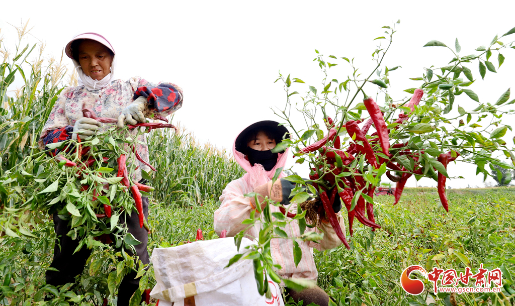 8月28日,高臺縣南華鎮(zhèn)種植的1.02萬畝“訂單紅辣椒”進入收獲季,田間地頭到處是種植戶們采摘、拉運、晾曬忙碌的身影。