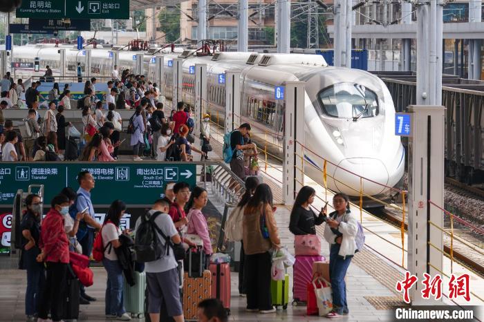 8月31日,云南昆明,列車抵達(dá)昆明站。當(dāng)日,為期62天的中國鐵路暑運(yùn)結(jié)束。中新社記者 劉冉陽 攝