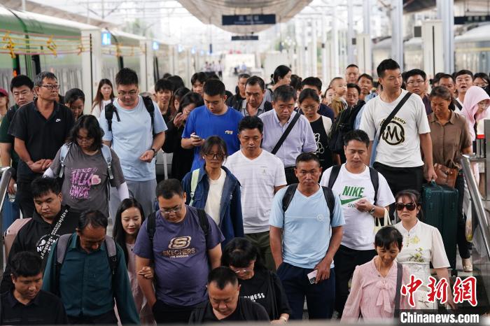 8月31日,云南昆明,列車抵達(dá)昆明站,旅客走出站臺。當(dāng)日,為期62天的中國鐵路暑運(yùn)結(jié)束。中新社記者 劉冉陽 攝
