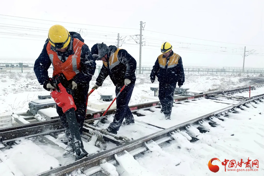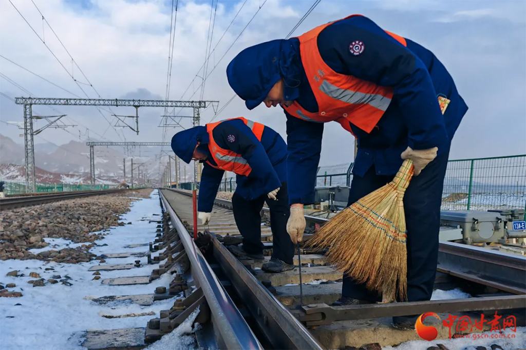 武威工務(wù)段芨嶺、山丹線路車(chē)間以雪為令,組織干部職工清掃道岔尖軌、滑床板、轉(zhuǎn)轍機(jī)等關(guān)鍵部位的積雪積冰,確保線路狀況良好。