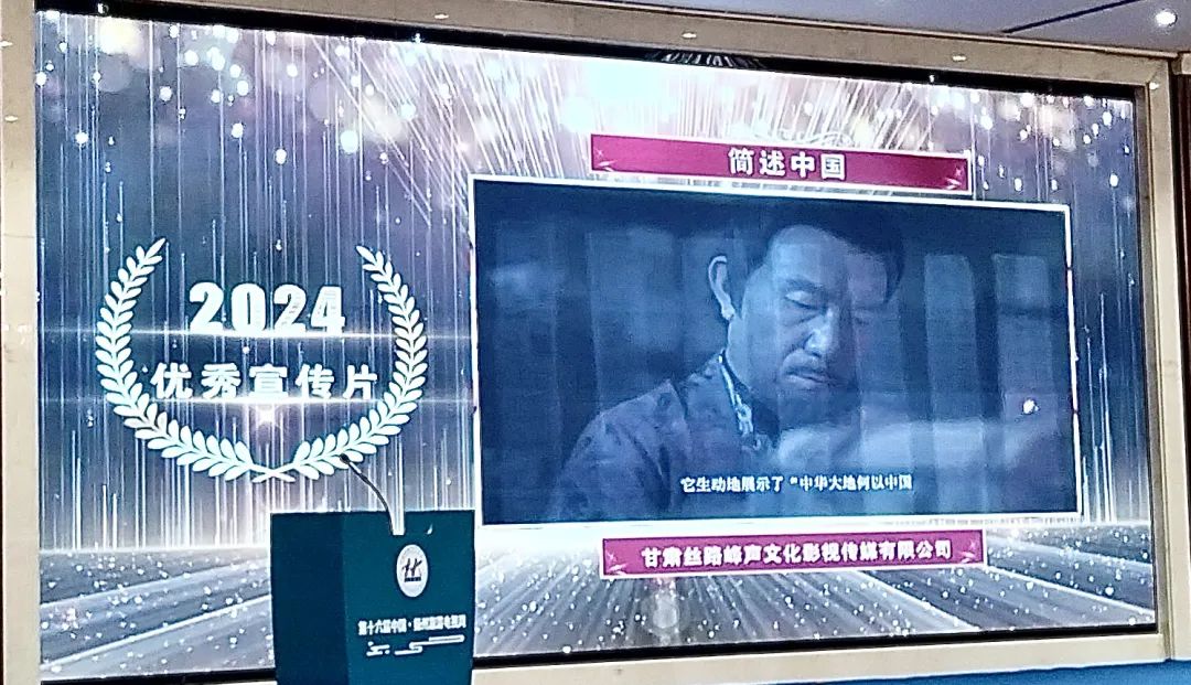 11月12日,由中國電視藝術(shù)家協(xié)會、揚州市人民政府主辦的第十六屆中國·揚州旅游電視周在江蘇省揚州市揭曉。由甘肅簡牘博物館出品,甘肅絲路峰聲文化影視傳媒有限公司承制的宣傳片《簡述中國》,榮獲本屆電視周優(yōu)秀作品獎。