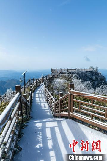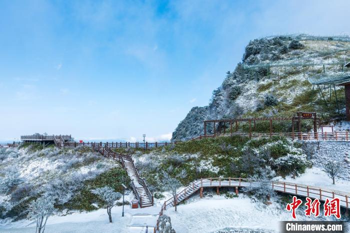 11月25日,受強(qiáng)冷空氣影響,四川省萬(wàn)源市遭遇強(qiáng)降溫天氣。八臺(tái)山景區(qū)迎來(lái)了一場(chǎng)降雪,雪花紛紛灑灑,八臺(tái)山被裝點(diǎn)成了銀裝素裹的冰雪世界。鄭興平 攝