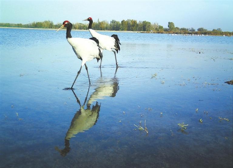 黑頸鶴在甘肅安西極旱荒漠國家級自然保護區(qū)棲息。新甘肅·甘肅日報通訊員 徐媛媛