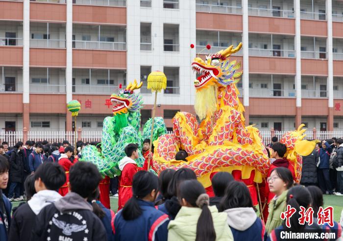 2025年2月7日,貴州省銅仁市玉屏侗族自治縣第一中學(xué)開展“舞龍迎元宵”主題活動,學(xué)生們在老師的帶領(lǐng)下進行舞龍表演,感受傳統(tǒng)民俗,喜迎元宵佳節(jié)。胡攀學(xué) 攝