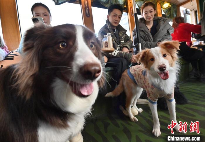 3月16日,吉林長春,寵物和主人在車廂拍照留念。中新社記者 張瑤 攝