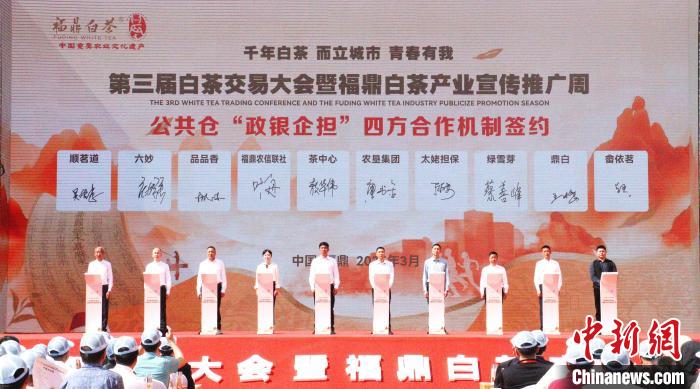 福鼎白茶公共倉“政銀企擔(dān)”四方合作機制簽約儀式。 林榕生 攝