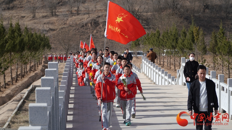 華池縣五所中學的800余名師生從華池縣列寧學校出發(fā),途經(jīng)閆洼子四十二烈士墓、劉懋功將軍墓、南梁革命烈士紀念碑、南梁紀念館、“兩點一存”主題廣場,徒步總路程7.2公里。