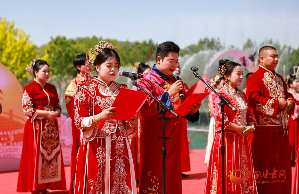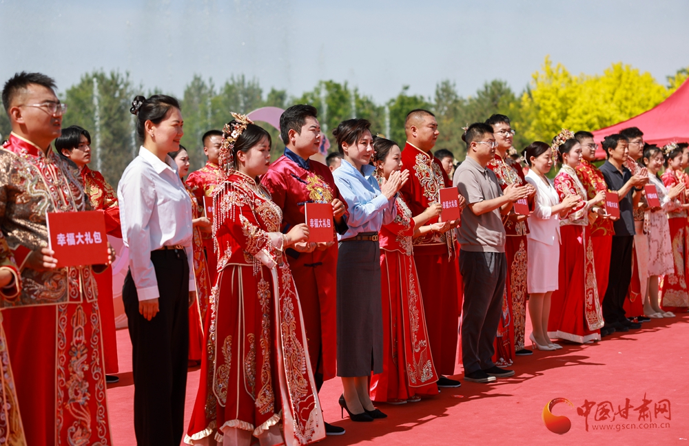 5月20日,酒泉市金塔縣“踐行新風(fēng) 青年先行”集體婚禮在文化廣場舉辦,來自全縣各行各業(yè)的20對新時(shí)代青年代表參加,在親朋好友和現(xiàn)場觀眾的見證下喜結(jié)良緣,共同開啟幸福人生新旅程。