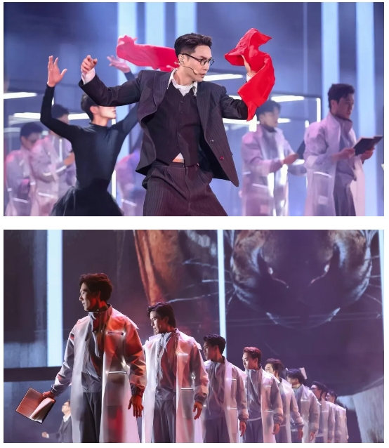 該劇最大的亮點(diǎn)在于創(chuàng)新性藝術(shù)融合,將非遺、科技、禪意、潮流、AI融入先鋒音樂(lè)話劇,打破傳統(tǒng)觀演模式和傳統(tǒng)舞臺(tái)結(jié)構(gòu),巧妙植入演唱會(huì)、音樂(lè)劇、話劇、舞劇甚至是電影多種藝術(shù)表現(xiàn)形式,通過(guò)人工智能、影視化、動(dòng)畫(huà)真人融合等最新科技賦能舞臺(tái),實(shí)現(xiàn)“戲劇+影視+Live”多種藝術(shù)場(chǎng)域的融合,“創(chuàng)造”了既現(xiàn)代又滿(mǎn)載中國(guó)審美的“敦煌”空間,讓觀眾沉浸體驗(yàn)敦煌文化的輝煌與魅力。
