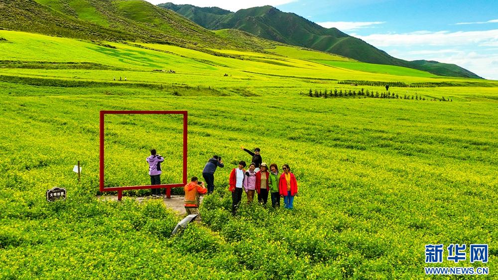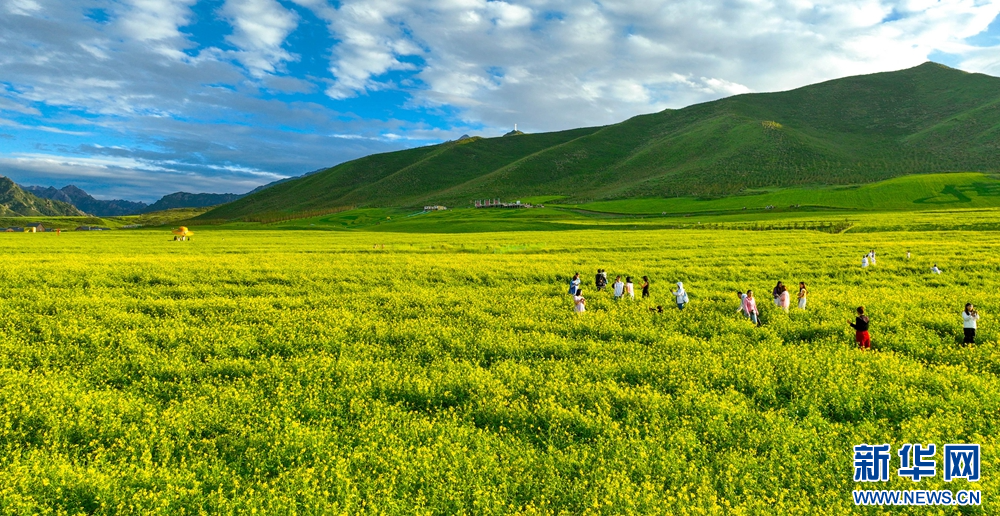 連日來(lái),位于祁連山下的甘肅省張掖市民樂(lè)縣扁都口景區(qū)萬(wàn)畝油菜進(jìn)入盛花期。金黃的油菜花海與草原綠野相連,空氣中彌漫的淡淡花香,醞釀山川,醉了游人。新華網(wǎng)發(fā)(王將 攝)