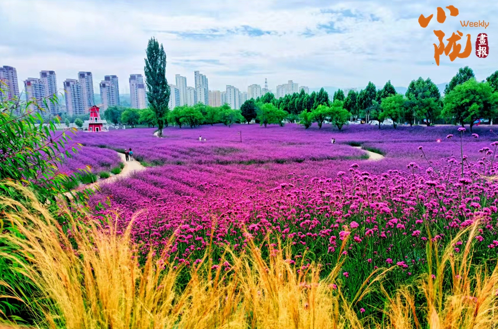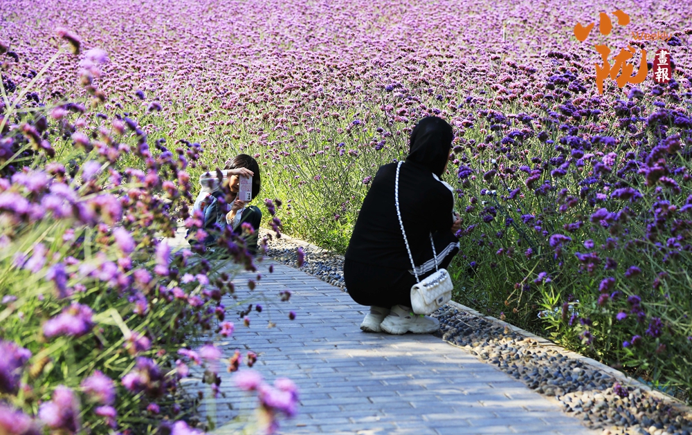 浪漫的花堤與黃河自然相擁,像大地鋪開的彩色錦緞。最先撞進(jìn)眼球的,是萬壽菊的熱烈,一簇簇、一片片,風(fēng)過時便齊齊搖晃,再往前走,成片成片的馬鞭草漫過視野,恍惚間才驚覺這是獨(dú)屬于永靖的混搭浪漫。
