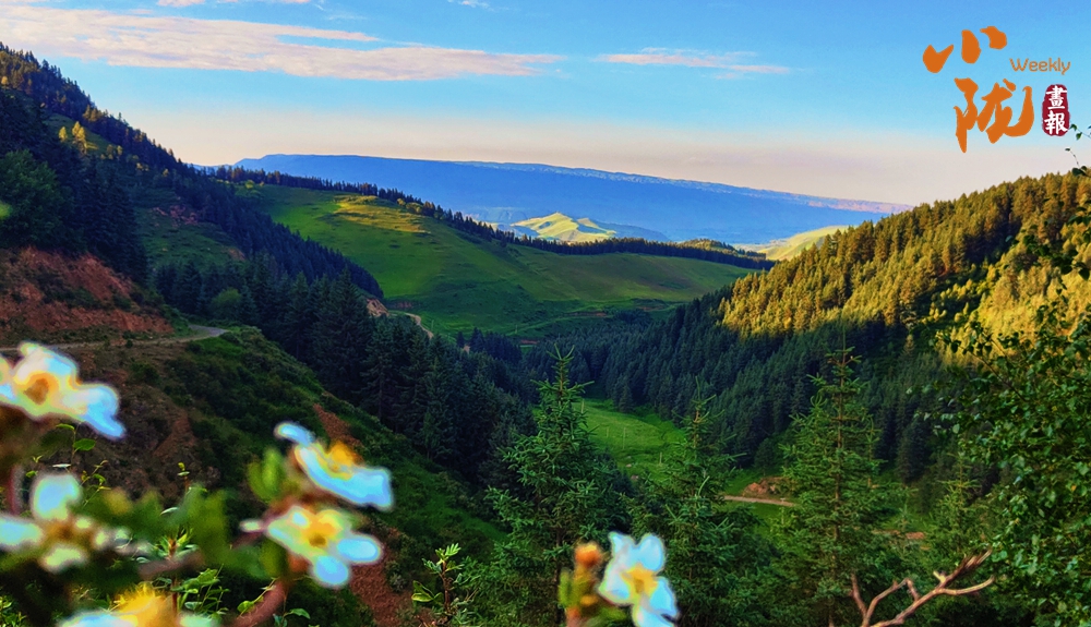 在起伏的丘陵間,廣袤的草原宛如少女柔美的曲線,美得簡直超出想象,綠草茵茵、繁花似錦,微風吹過,濃郁的花香撲鼻而來。那連綿的群山、蜿蜒的河流,交織成網,將這片土地滋潤成生命的綠洲。