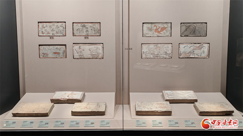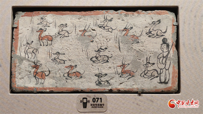 在博物館的“古冢丹青——高臺魏晉十六國時期墓葬壁畫藝術(shù)陳列”展廳里,記者看到,《二牛耕地畫像磚》生動再現(xiàn)了當時的農(nóng)耕技術(shù):兩頭耕牛架著直轅犁,后隨的男子一手扶犁一手揚鞭,展現(xiàn)了典型的“二牛抬杠”耕作方式?!赌谅箞D壁畫磚》則描繪了古人放牧鹿群的獨特場景,為研究當時的畜牧業(yè)發(fā)展提供了珍貴資料。