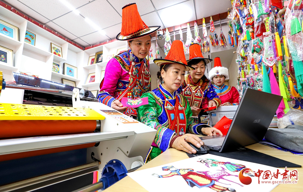 1月18日,祁連山下寒風凜冽,張掖市肅南裕固族自治縣的非遺傳承技藝大師工作室內(nèi)卻氣氛熱烈。非遺傳承技師潘小紅和楊海燕正帶領(lǐng)民族服飾愛好者,學習數(shù)字全自動刺繡、數(shù)字印花、全自動燙金、數(shù)字智能縫紉、數(shù)字包邊、裁切及AI智能圖案設(shè)計等民族服裝智能化制作技藝。