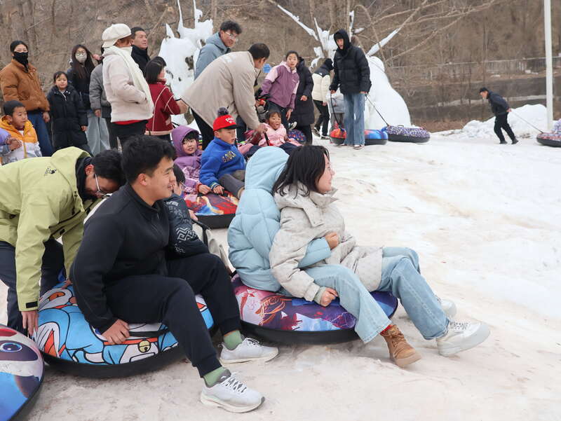 “冰雪之約,暢游遮陽”冰雪嘉年華現(xiàn)場,成年游客重拾童趣。中青報·中青網記者 王豪/攝